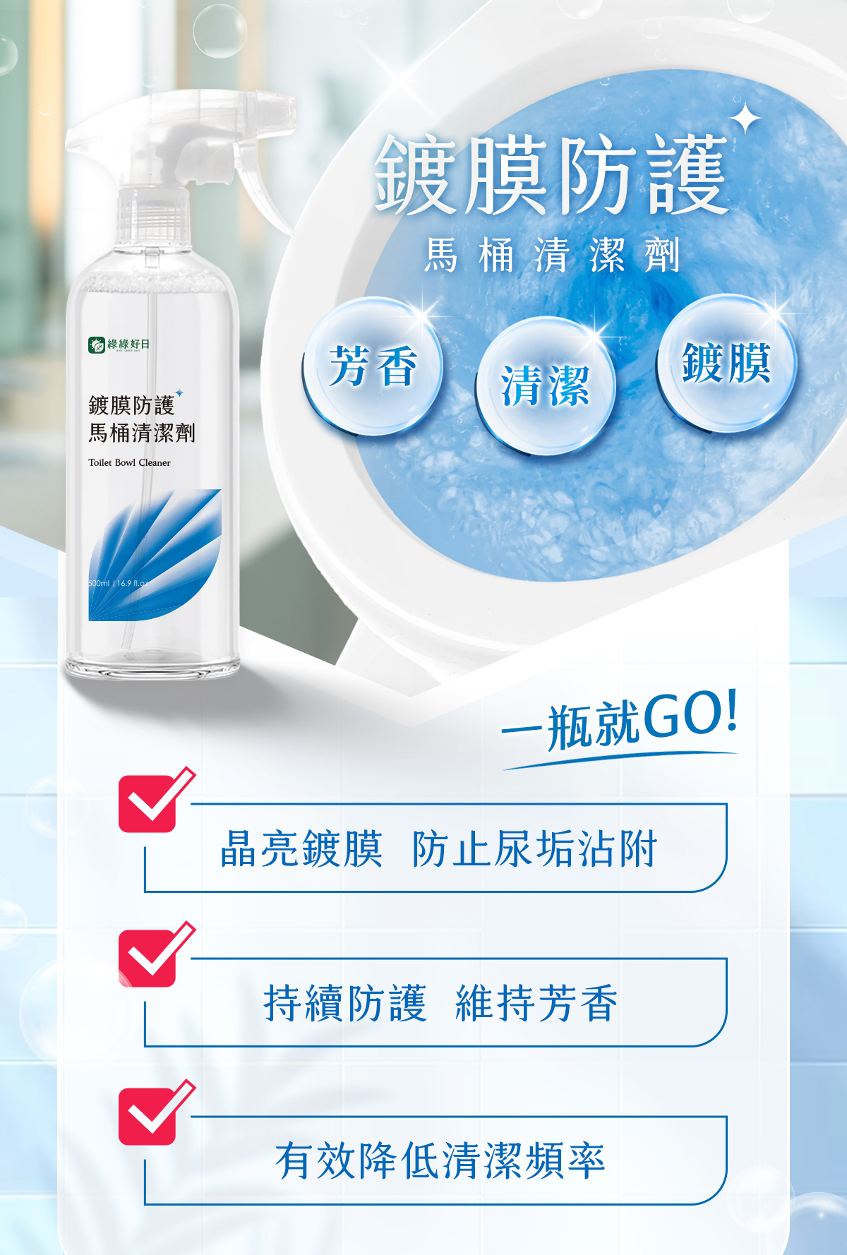 ✓ 鍍膜防護馬桶清潔劑 刷洗同時完成疏水防護