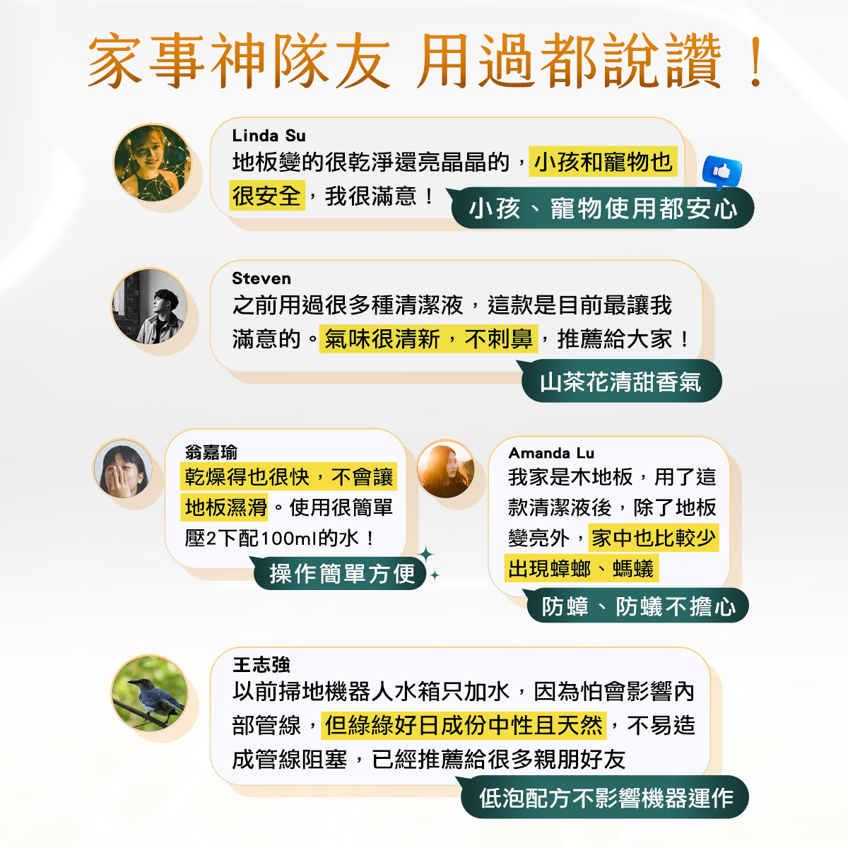 ✔️ 中性溫和低泡配方,適配一般掃拖機型與各式地板